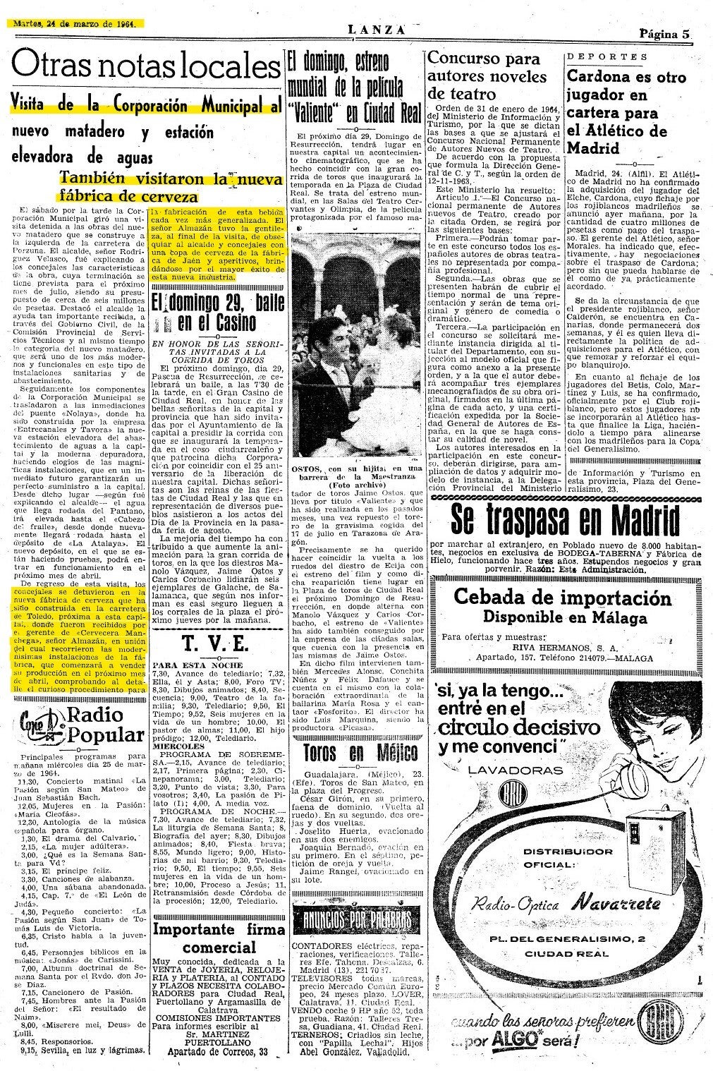 En marzo de 1964, dos meses antes de su inauguración y del inicio de la producción, la fábrica de cervezas Calatrava recibió la visita de la corporación municipal ciudadrealeña una vez finalizadas sus obras de construcción, siendo el gerente de la sociedad Cervecera Manchega, S.A., el Sr. Almazán, el encargado de hacer de maestro de ceremonias para sus visitantes. Tanto alcalde como concejales pudieron ver en primera persona la modernidad de las instalaciones, certificando que todo está preparado para su entrada en funcionamiento. Así informa de ello el diario Lanza de 24 de marzo de 1964.